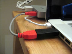 このところSSDの値段がぼよん,ぼよんとイイ感じに下がったので,CrucialのReal SSD C300 CTFDDAC128MAG-1G1を導入した。SSD本体の値段はよいのだが,2.5"のSSDをMacPro筐体の3.5"内蔵ブラケットに取り付けるためのアダプターがただの板とネジで¥2,000もするのはどうにも納得がいかない。そこで,ガムテープと並ぶミュージシャン必須の神器,結束バンドの登場だぁ。